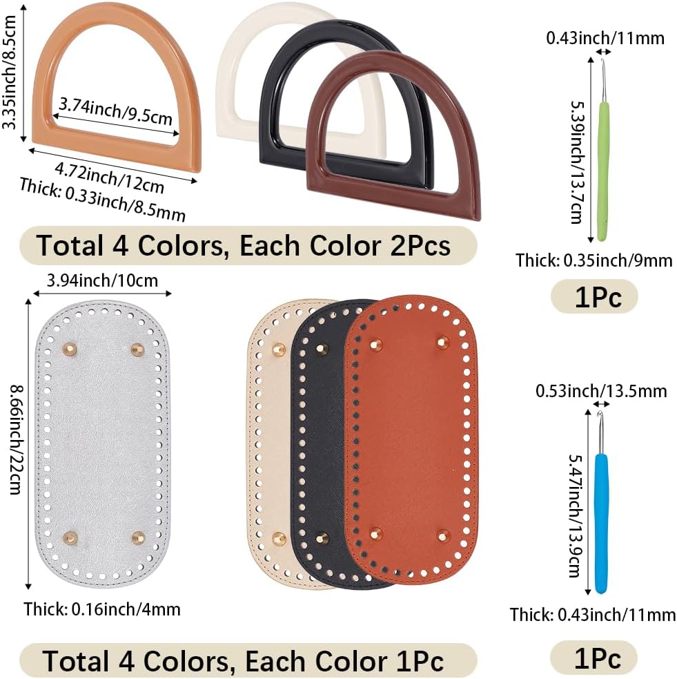 That gap between finishing your crochet bag and actually having a bag you’d carry in public, this kit fills it. The four PU leather bases and eight D-shaped handles give your project a polished, put-together look without a ton of extra effort.