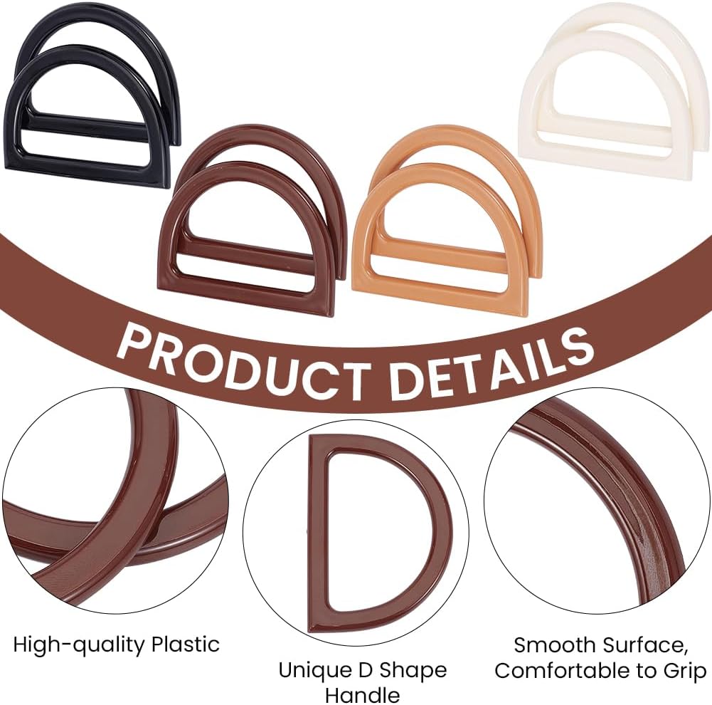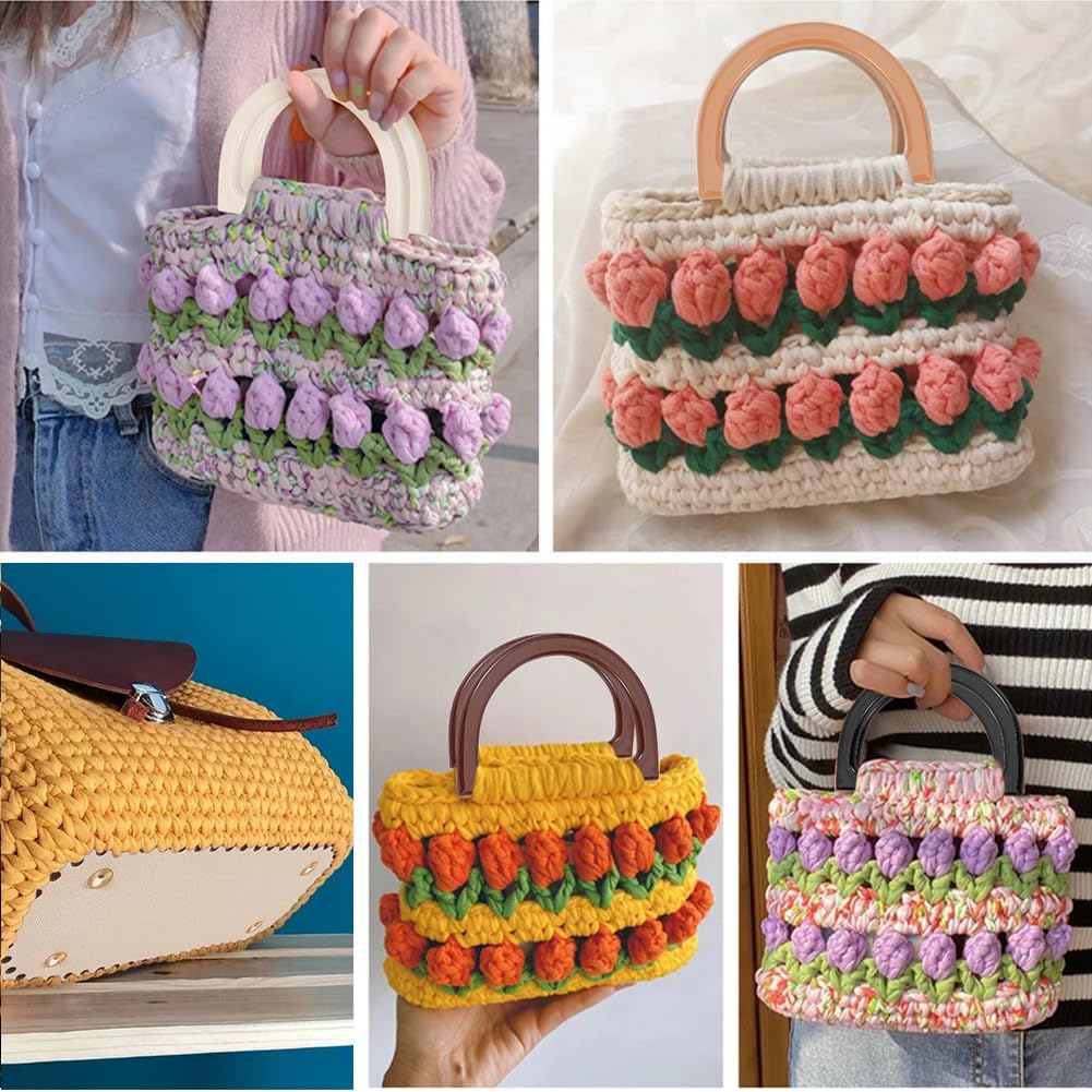 The eight D-shaped plastic handles come in four colors, two of each, so you’ve got options to match your yarn. They’re smooth, comfortable to grip, and solid enough to actually hold the weight of a finished bag.