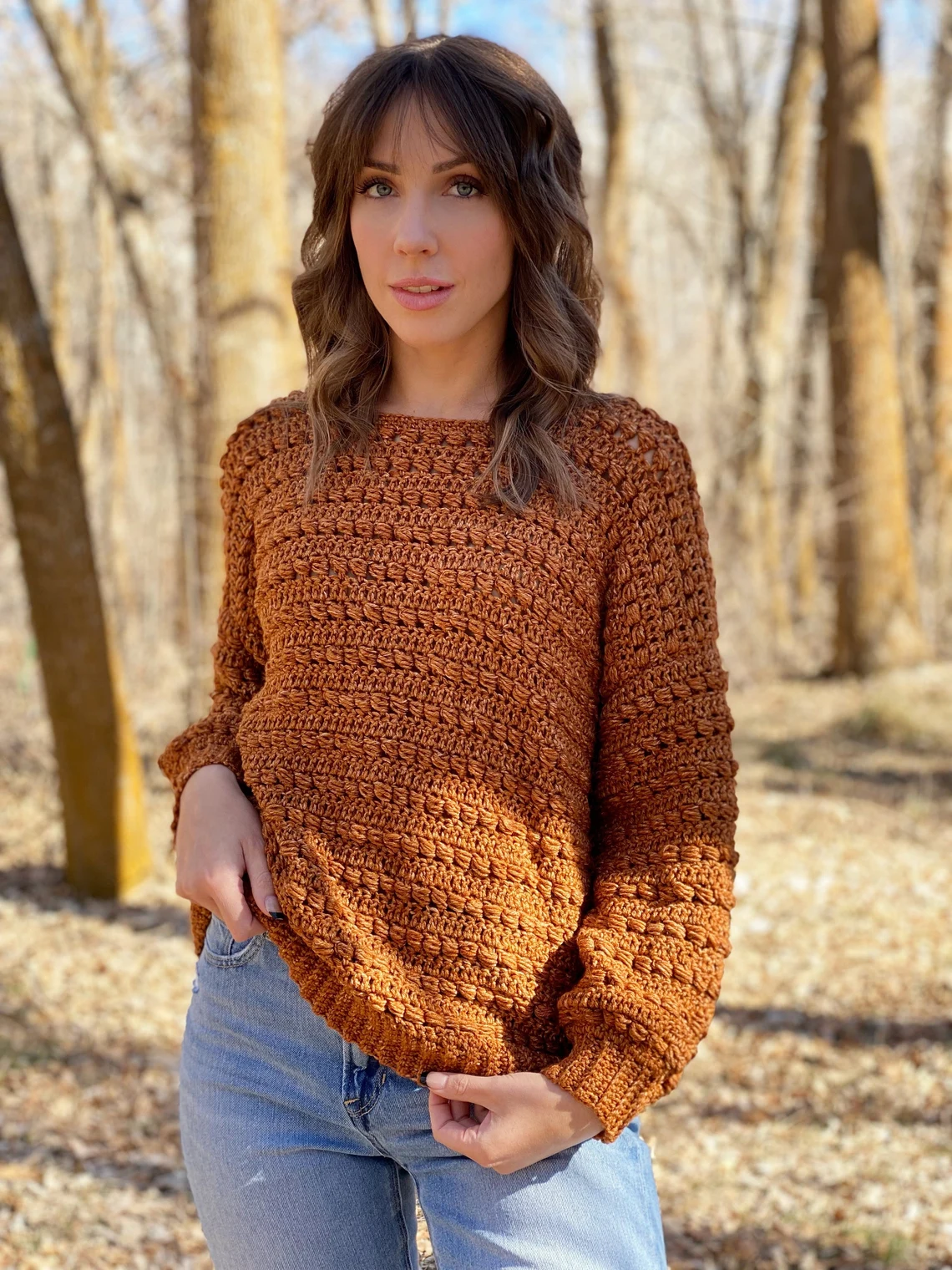 This crochet pullover sweater pattern gives you that cozy, relaxed sweater you’ll want to wear over and over, without the guesswork. The Stony Shore Pullover works up in worsted weight yarn with a mix of simple stitches that create a really satisfying texture across the body and sleeves.