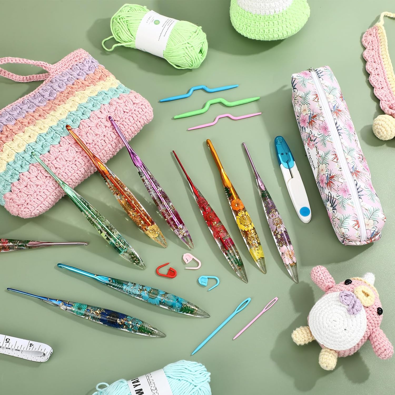 The elegant floral handles add a charming touch of beauty to your craft space, perfectly combining aesthetics with practicality. Everything fits neatly in the included storage bag, so you can keep your hooks protected and take your projects wherever inspiration strikes.