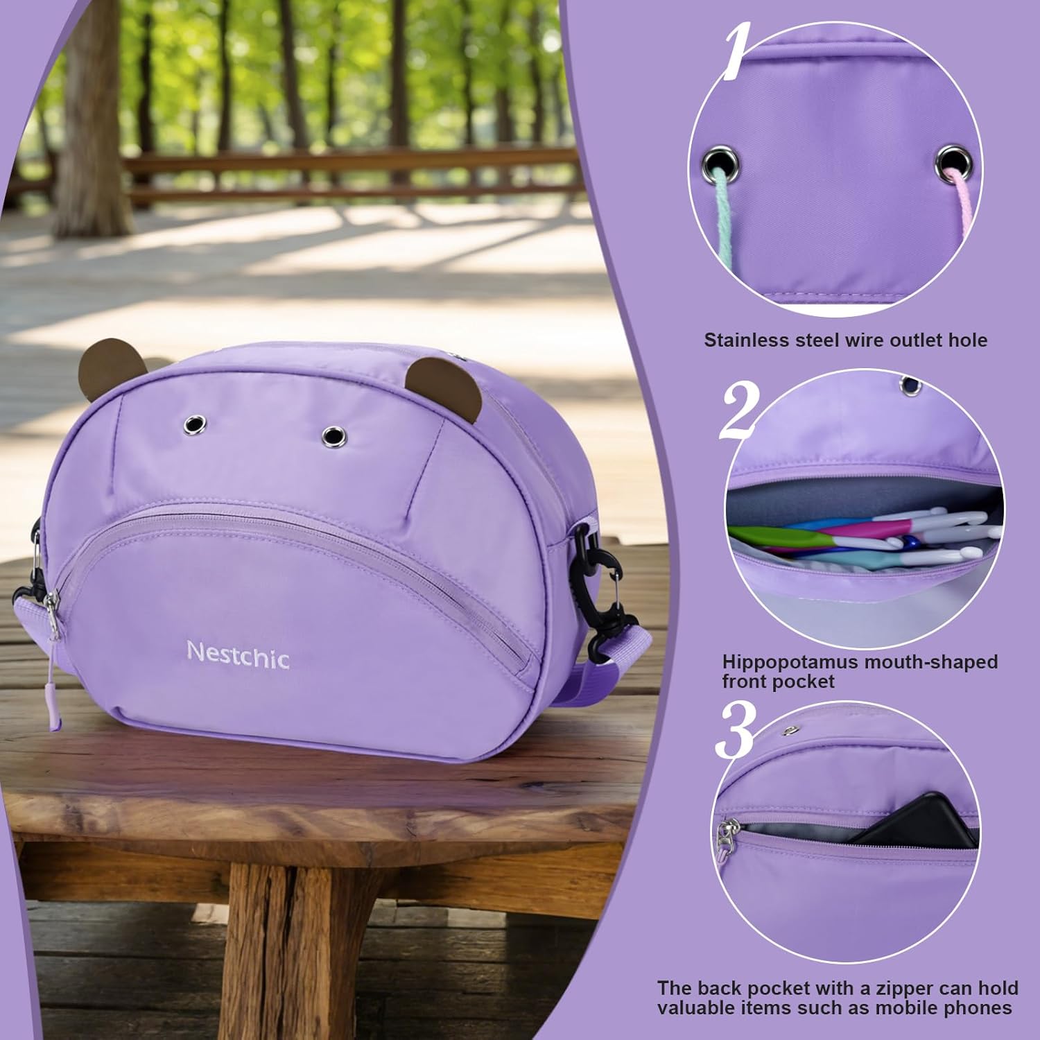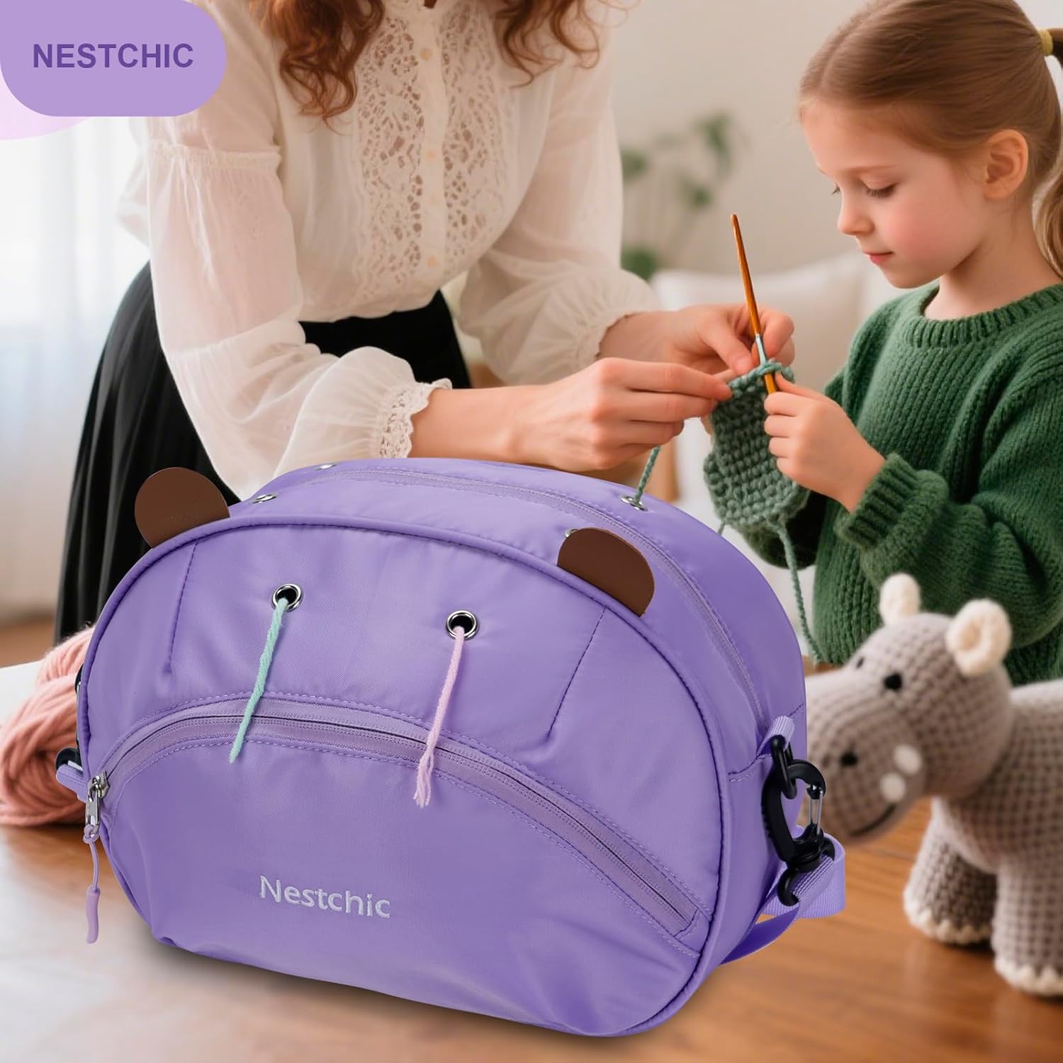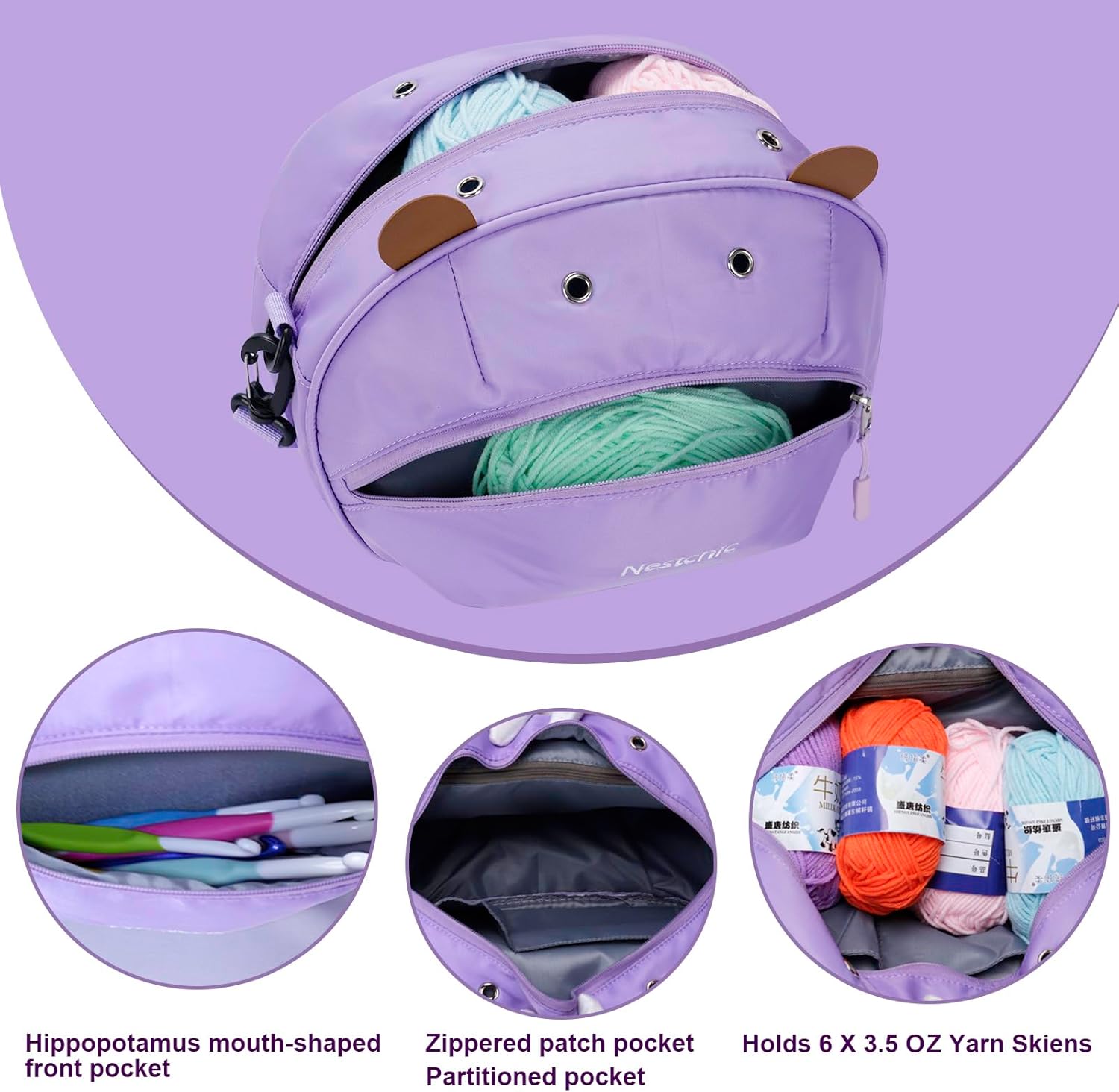 There’s a hidden back pocket for your hooks, scissors, and stitch markers, plus a front mouth pouch for small tools. A back zippered pocket keeps your phone or wallet secure while you’re crafting at a coffee shop or on a plane.