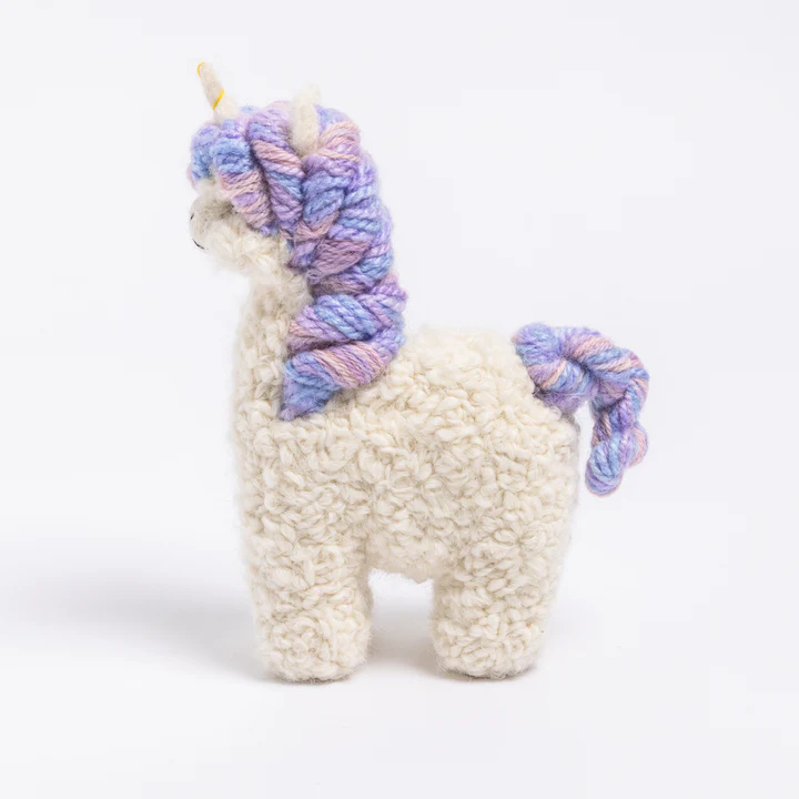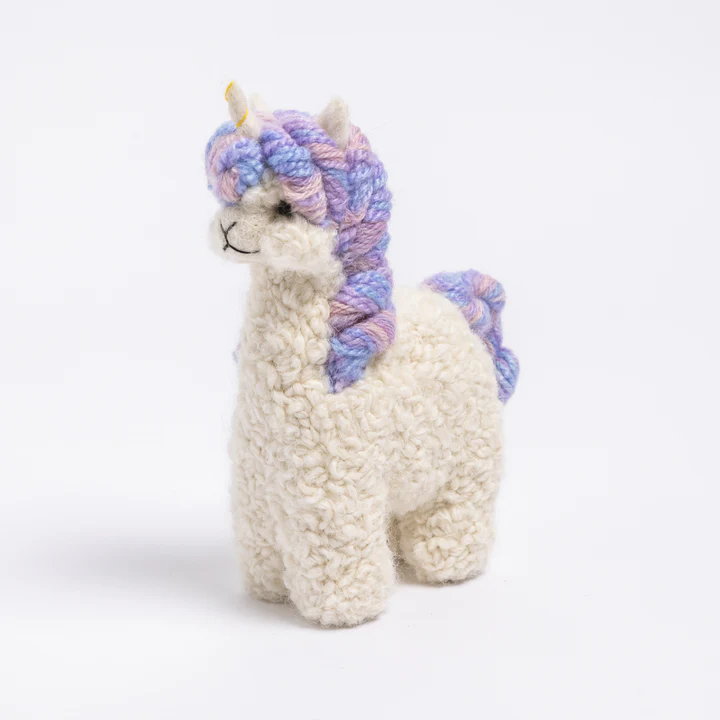 When you’re done, her tail zips right back in. Uma is soft, colorful, and brings a bit of sparkle to your workspace. She’s about 6 inches tall, so she fits perfectly in your project bag. Handmade in Peru, each one has its own little personality.