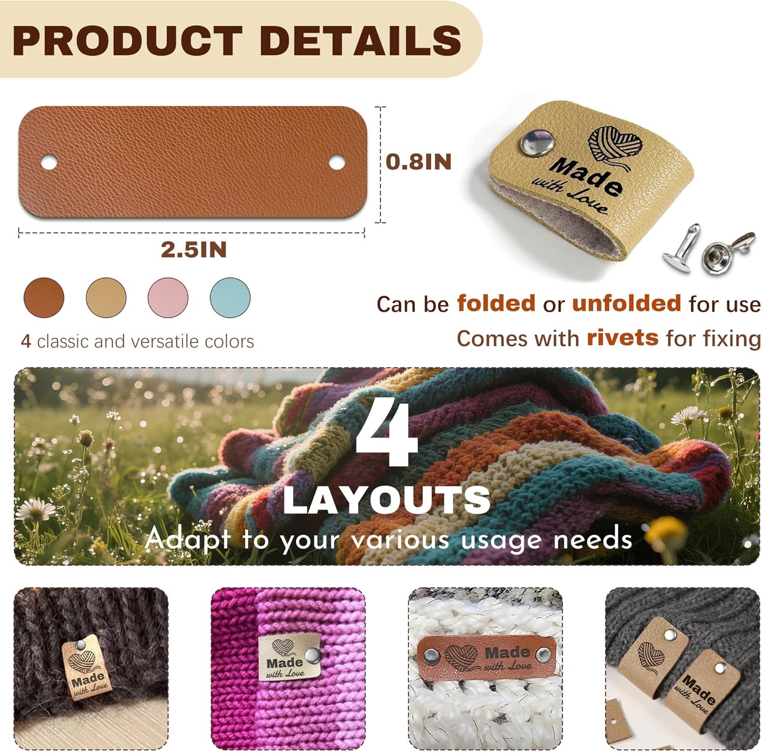 Each tag is engraved with “Made with Love” and a cute heart design that feels warm and personal. Four classic colors make mixing and matching with yarn colors easy.