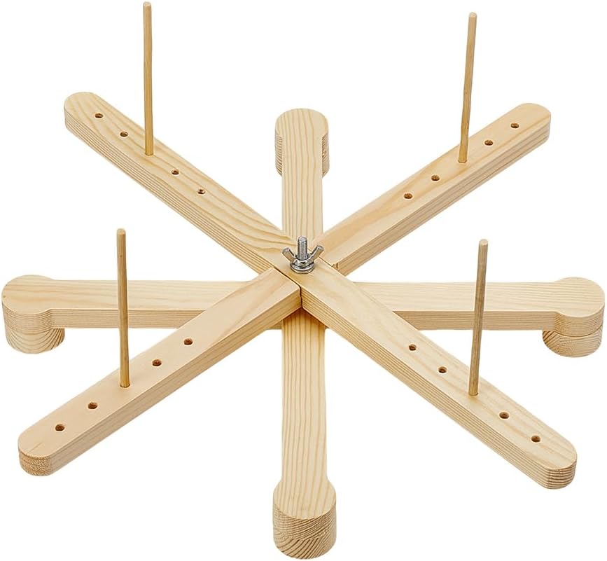 This wooden yarn swift makes winding yarn hanks effortless and tangle-free. The handmade beech-wood base adds rustic charm to any craft room.